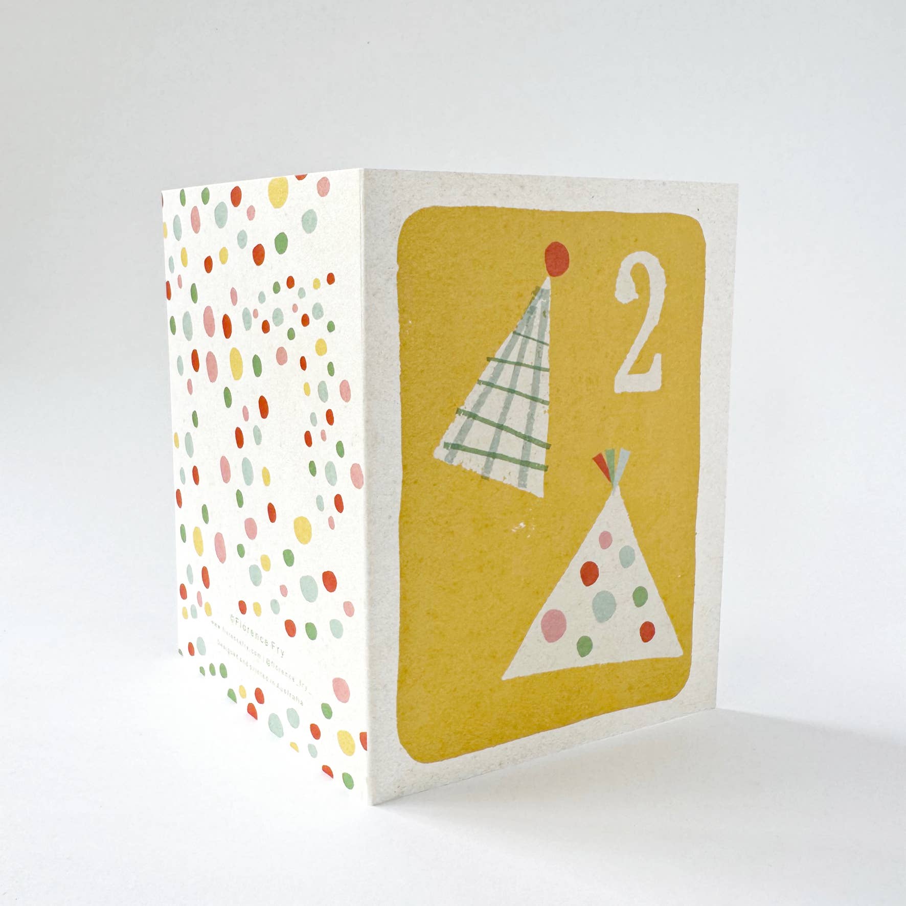 Our 2 Party Hats card is size A6 and printed on a beautiful FSC approved paper. The card comes with a recycled Kraft envelope.