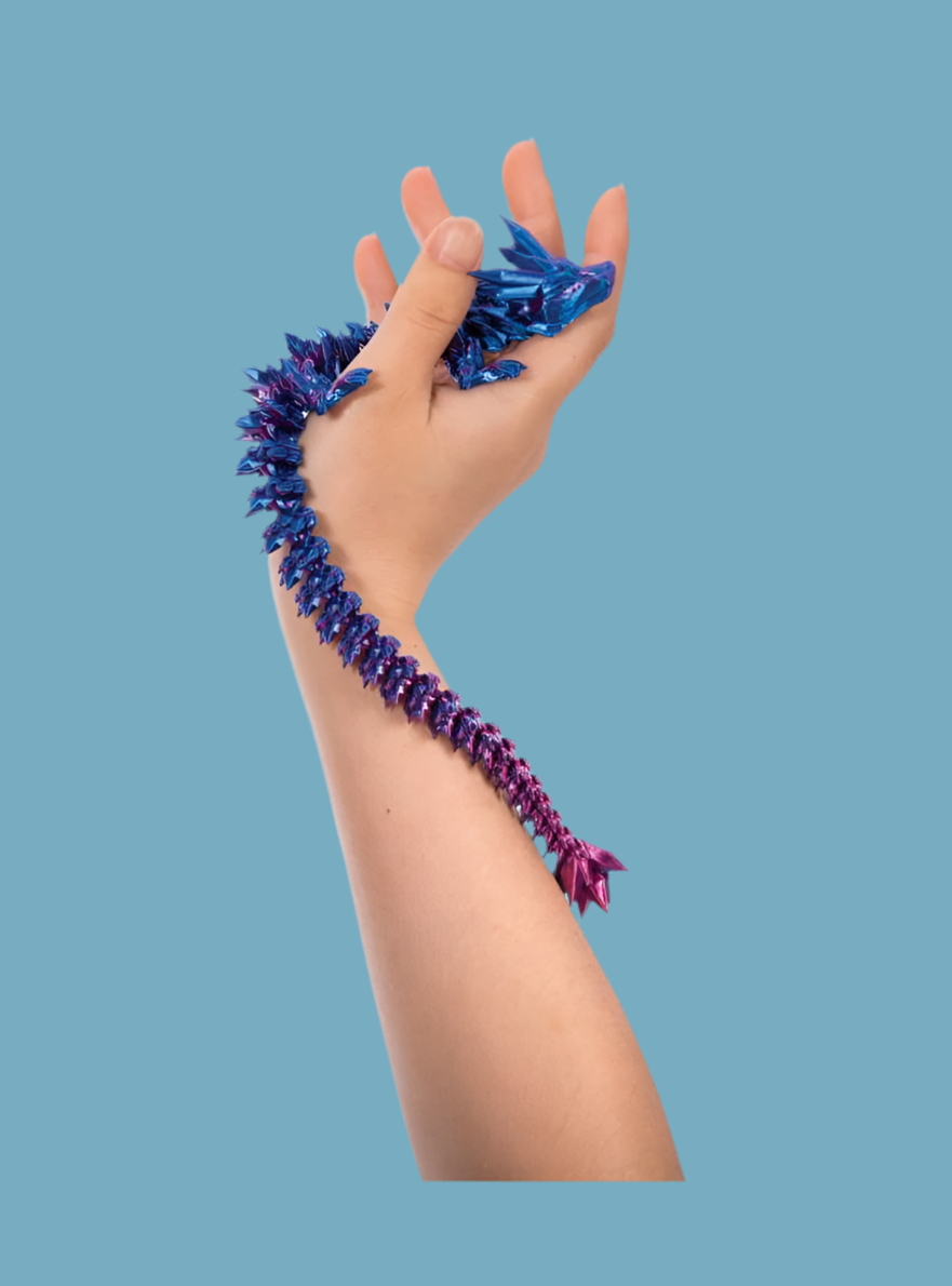 Articulated 3D printed sensory dragon.Each joint is carefully designed to move seamlessly.