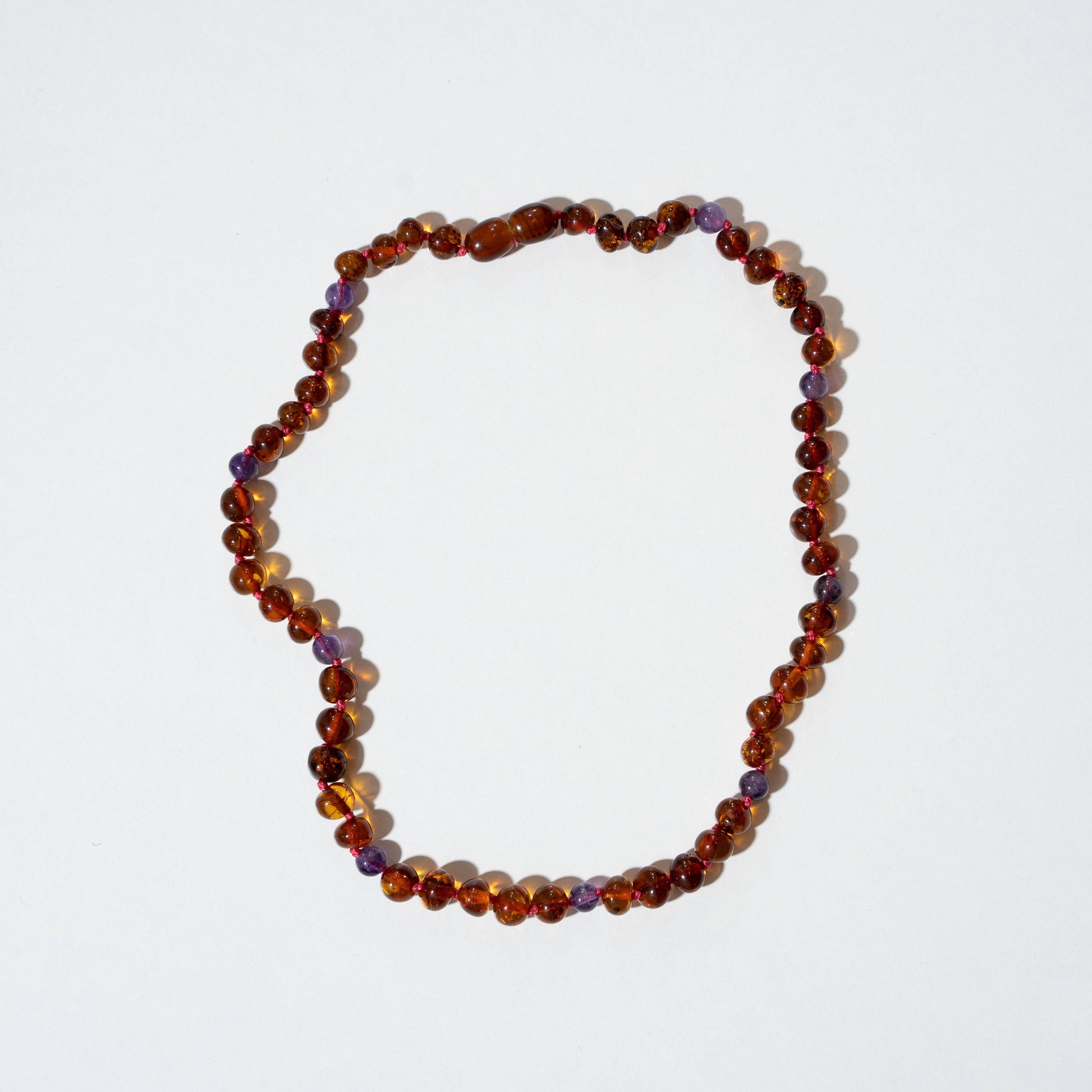 Polished Caramel Amber & Deep Purple Amethyst, (Safety Clasp)