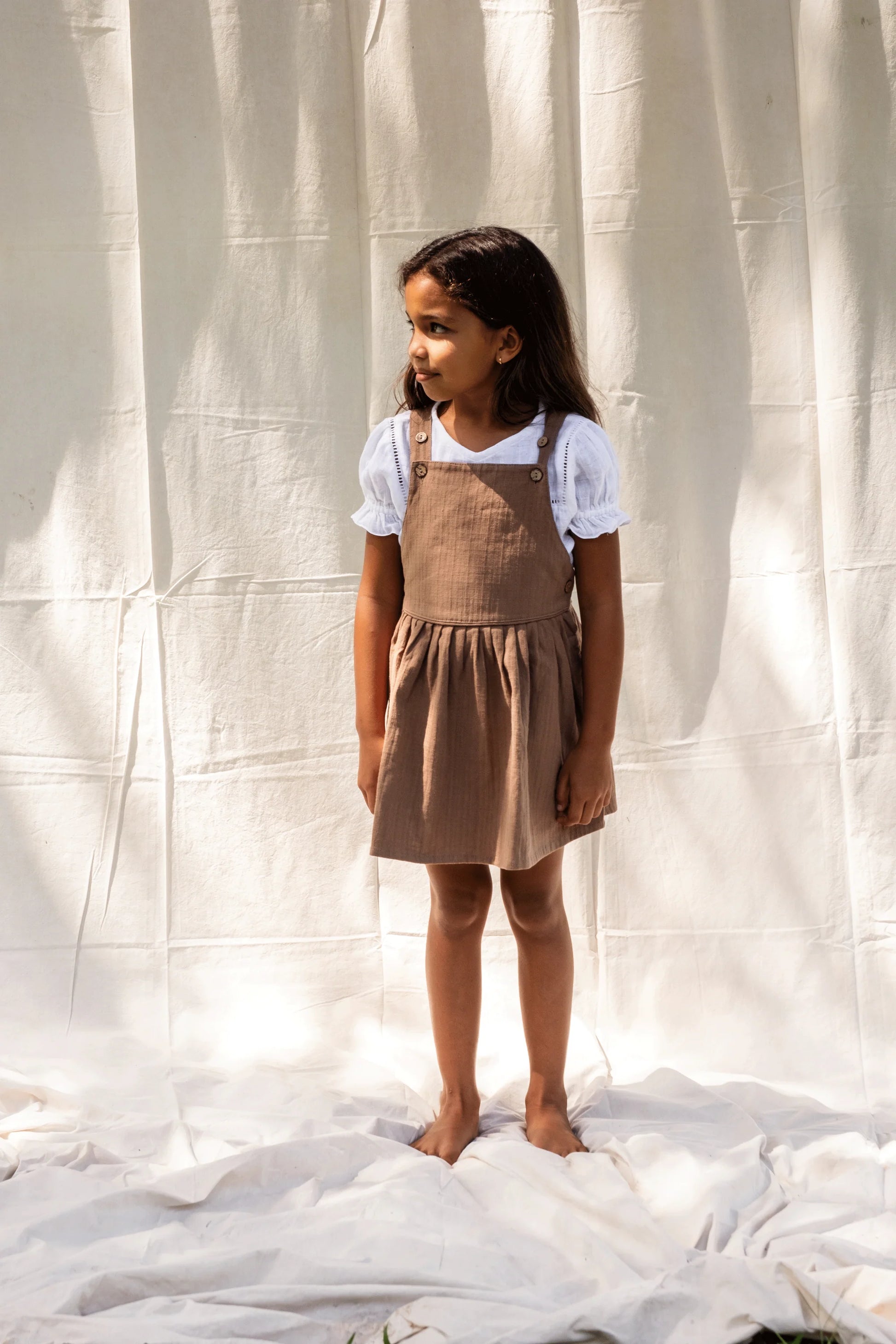 The sweetest transeasonal piece, perfect on its own or layered over her favourite Illoura blouse. The Anouk Pinafore is crafted from beautifully textured cotton and features a pinafore style silhouette and adjustable straps.