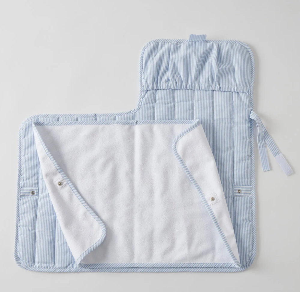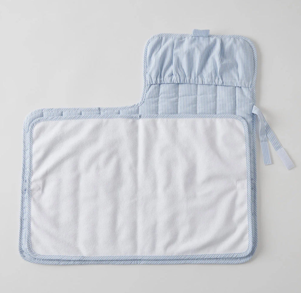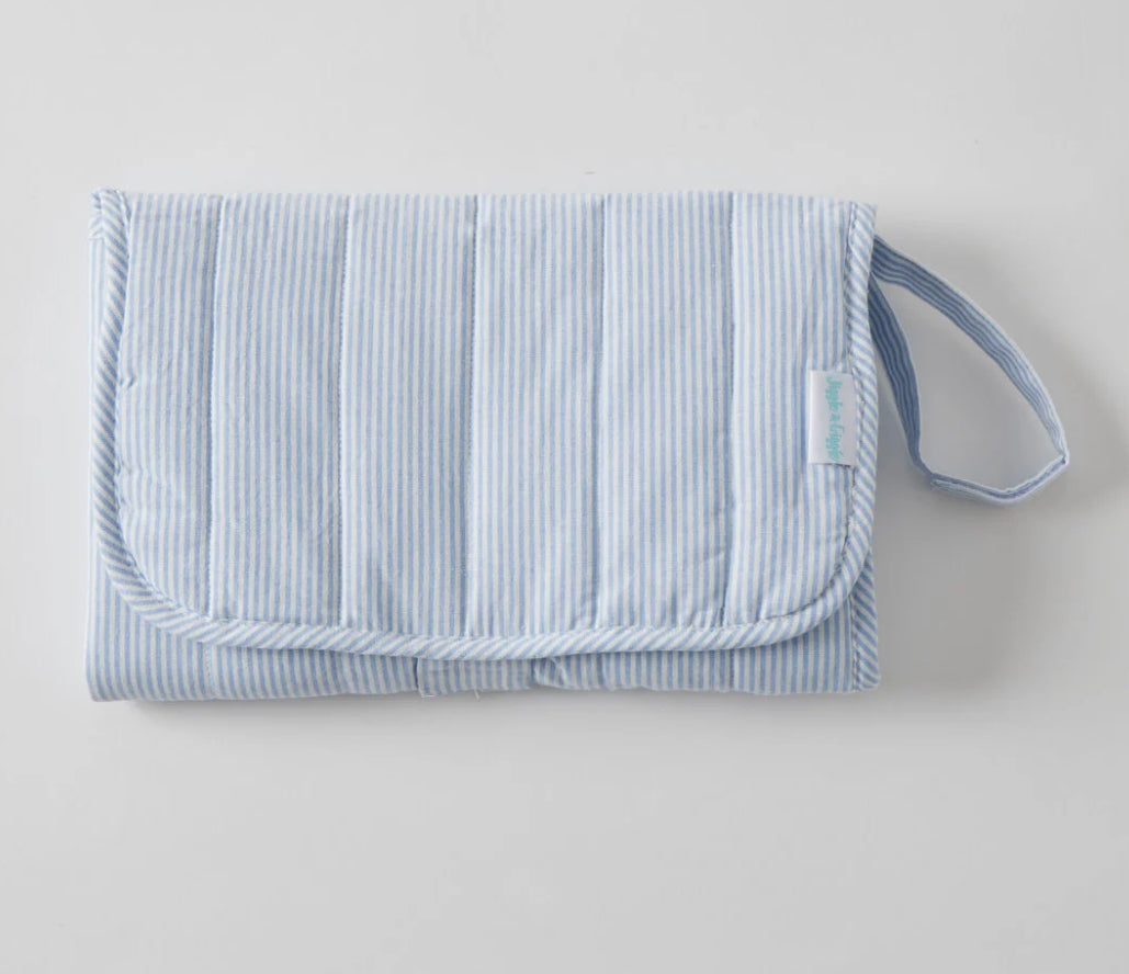 Ensure you always have a pristine changing mat available with the Jiggle & Giggle Blue Changing Mat. The quilted essential is designed with a soft towelling inner with a waterproof inner layer and an internal elasticated pocket to hold baby’s changing cleaners and more.