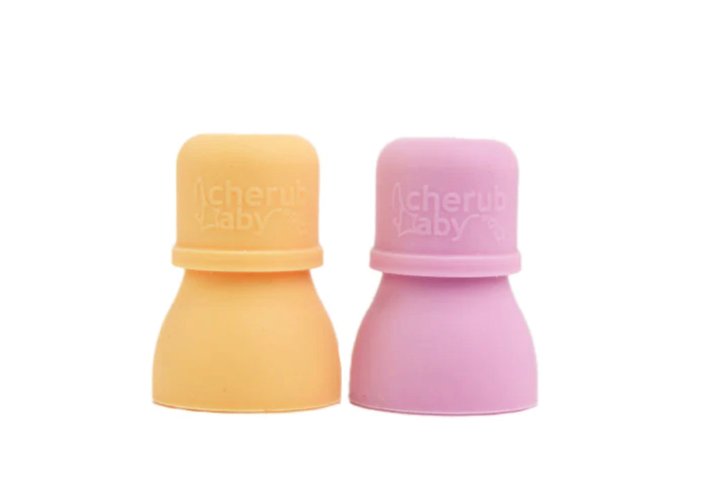 Prevent spills, control flow and protect little mouths against sharp edges with these super soft silicone food pouch spouts. Fits all supermarket pouches and Cherub Baby pouches. BPA, Phthalate Free and free of all nasties. The spout are made only from pure food grade silicone.