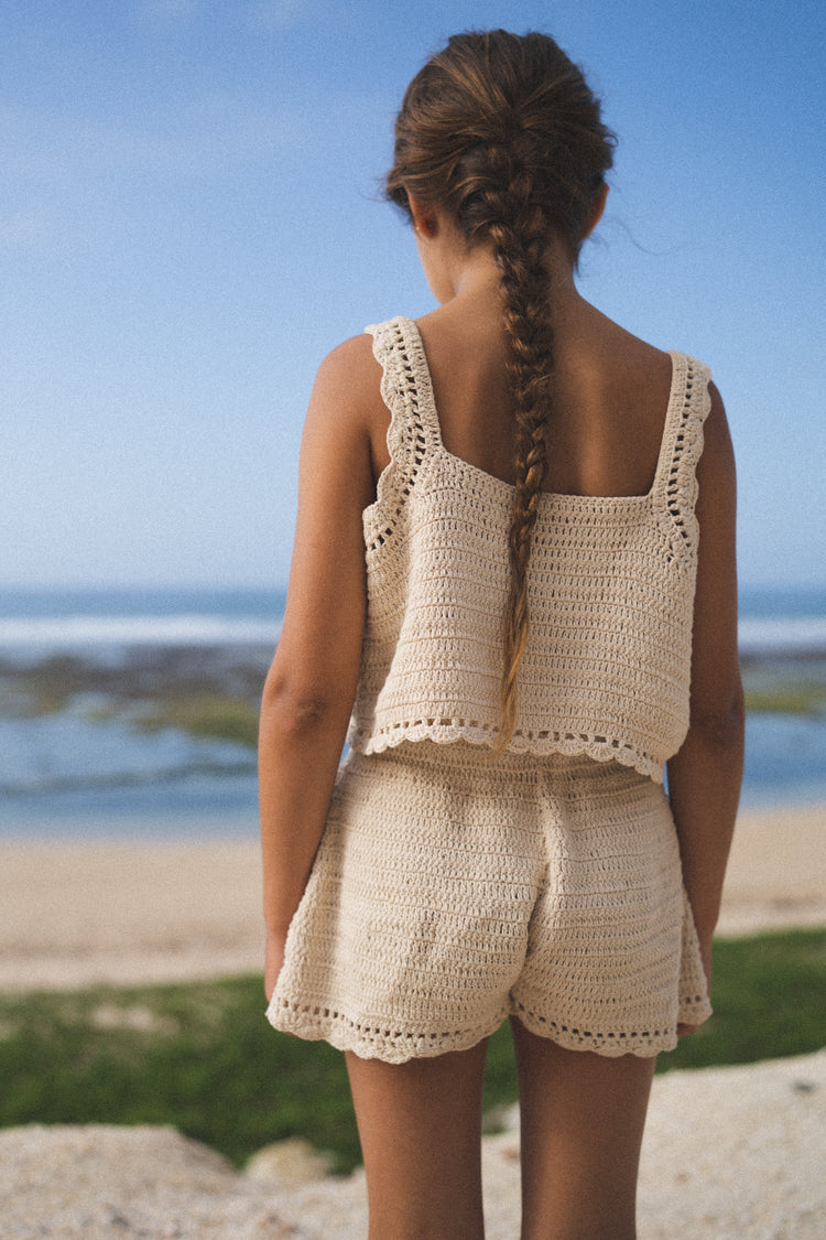Our extra comfy shorts are a wardrobe staple, so we have created them in a versatile Ecru hue. Handmade from natural cotton crochet, this style offers a high-rise fit, elasticated waistband and scalloped edge finishings. We love these worn with the Crochet Top or Tilly Blouse for the perfect vacation style.