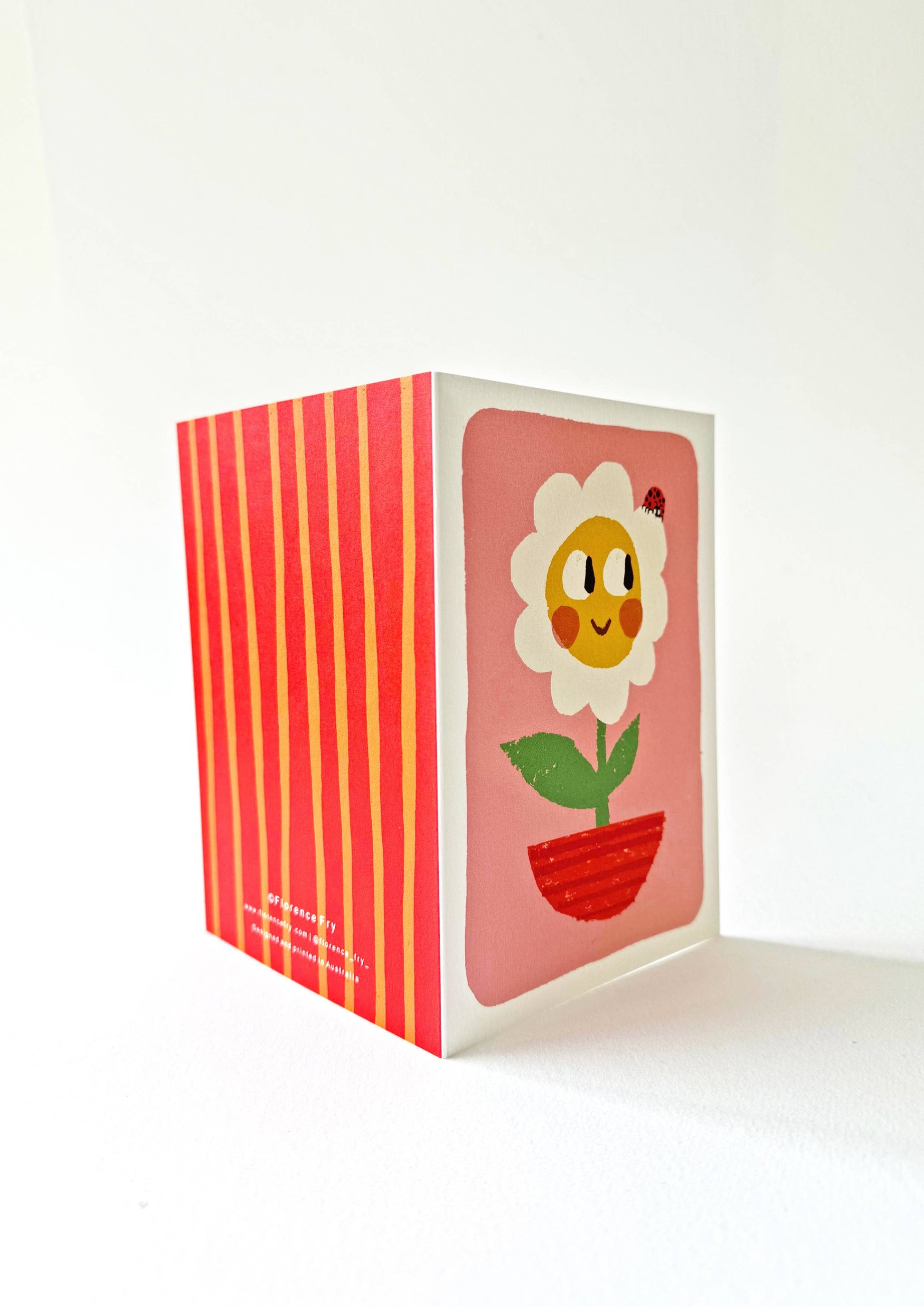 Our Daisy Flower Pot Friend card is size A6 and printed on a beautiful FSC approved paper. The card comes with a recycled Kraft envelope.
