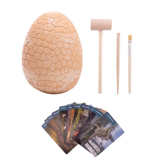 Includes: 900g clay egg, 14 dinosaurs and 3 wooden excavation tools.