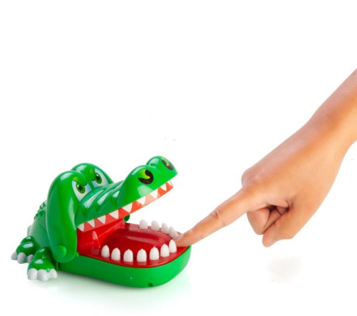 Each time you open the dinosaur's mouth, a different tooth will become the switch. Be cautious, though, as the dinosaur will bite if you touch its sore tooth, and the sore tooth changes every time you check on him. Just press that tooth to keep the dinosaur's mouth closed. Let's find out how lucky you can be! Size: 9x6x5cm *Each sold separately.