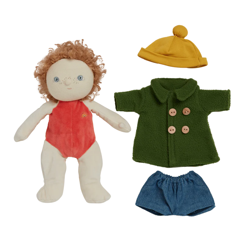 Dressed in a cheery yellow beanie and buttoned-up green trench coat, Charlie Chestnut is ready to dive into a world of make-believe! Will he lead a parade of Dinky's through the living room jungle, search for hidden treasures beneath the cushions, or dream up his next grand escapade in the garden? Charlie turns every day into a chance for big adventures, Dress Me Dinky’s are where stories begin, and memories are made, one outfit at a time. Charlie's little wardrobe is full of big dreams.