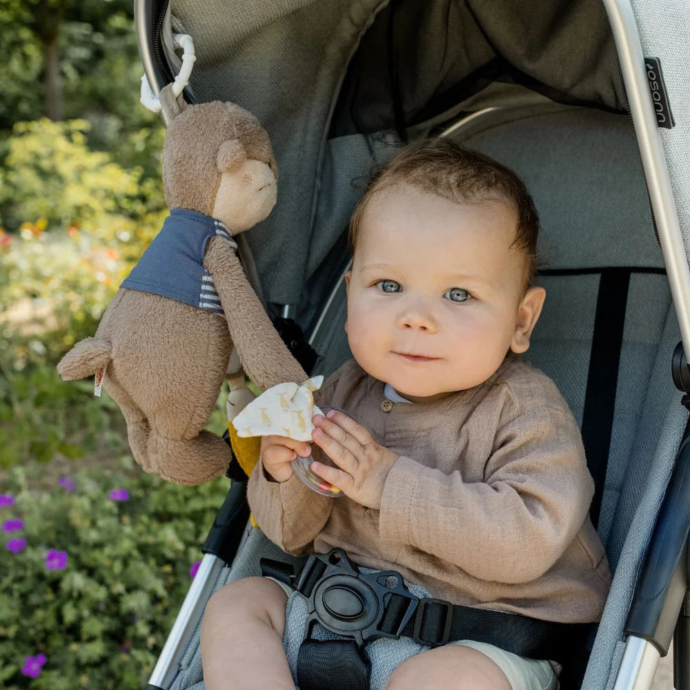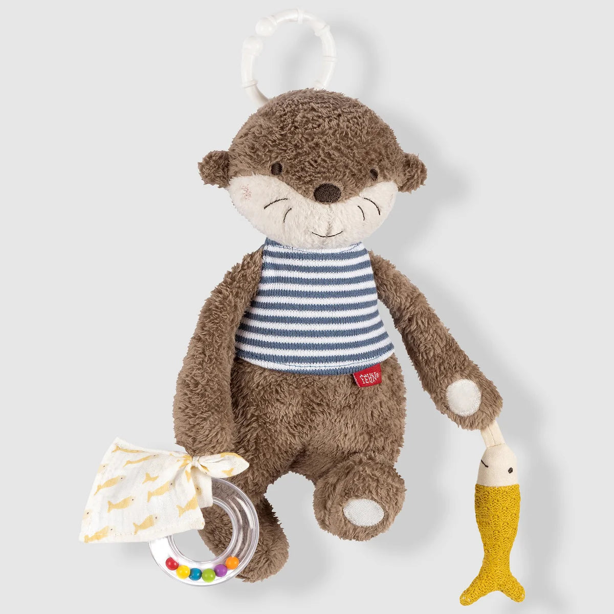 The Activity Otter is a playful hanging toy featuring crinkly paper, a rattle ring, and a bell to stimulate curiosity and promote fine motor skills. With soft materials, a muslin cloth, and a fish friend, it encourages grasping, touch, and exploration. Easily attachable to prams, cots, or play gyms, it’s perfect for play at home or on the go and makes a thoughtful gift for baby showers, birthdays, or special occasions.
