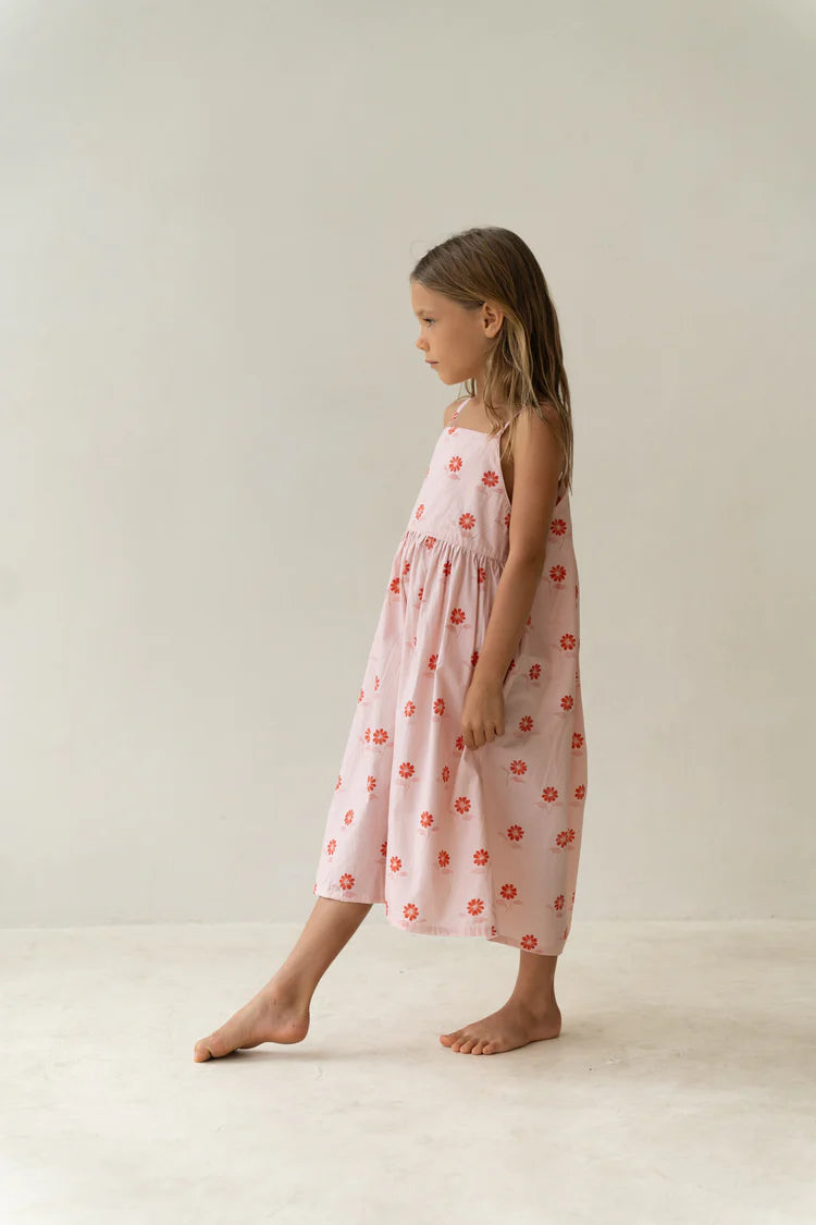 A beautifully feminine midi in our effortlessly fun, bespoke Summer Daisy print - the Field Dress is crafted from textured and breathable cotton. This pinafore style dress has a scoop back and adjustable tie detail, perfect for layering over a long sleeve knit for those cooler days.