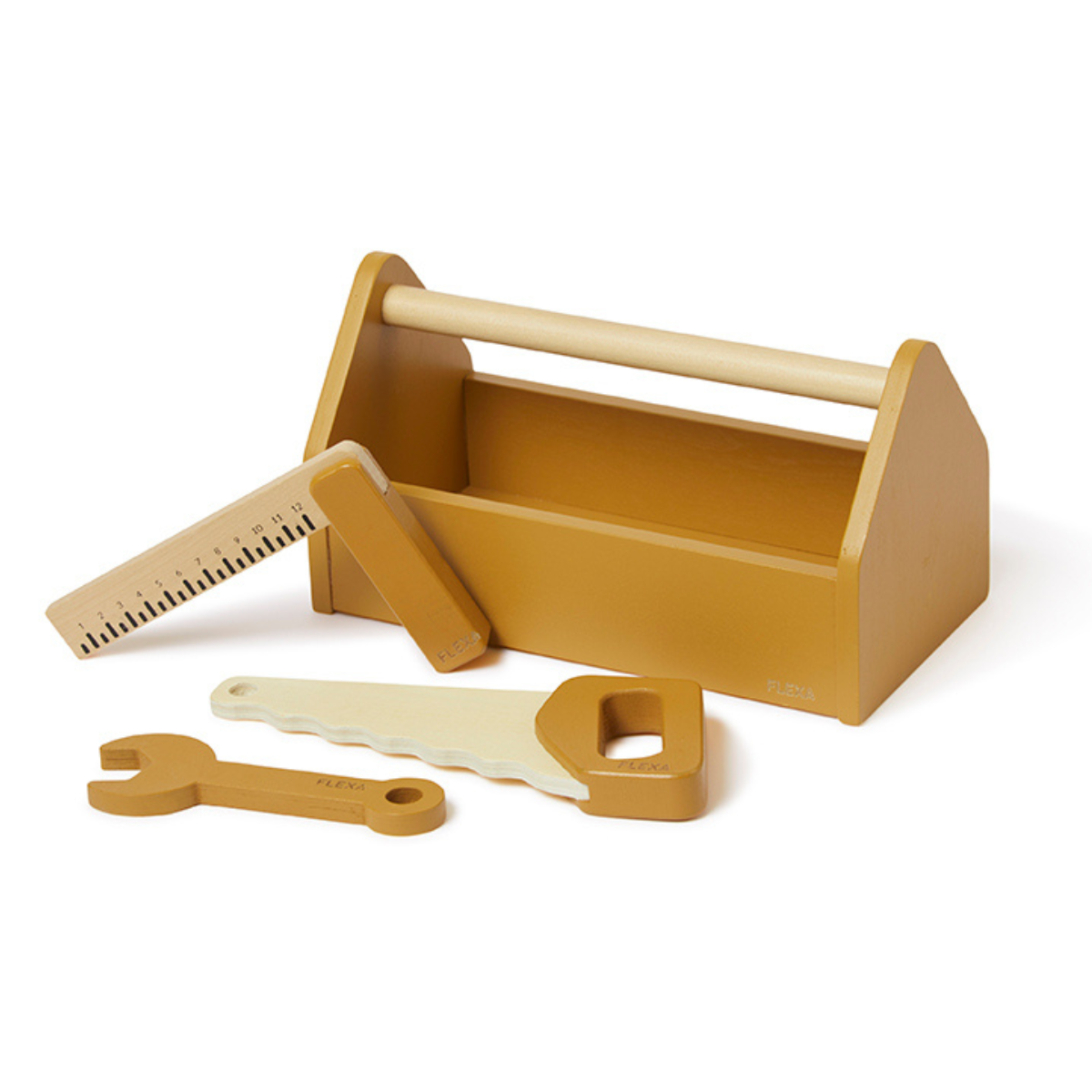 Made from FSC certified solid, natural wood, the set includes; a saw, wrench, a square ruler, and a storage box to carry all components.