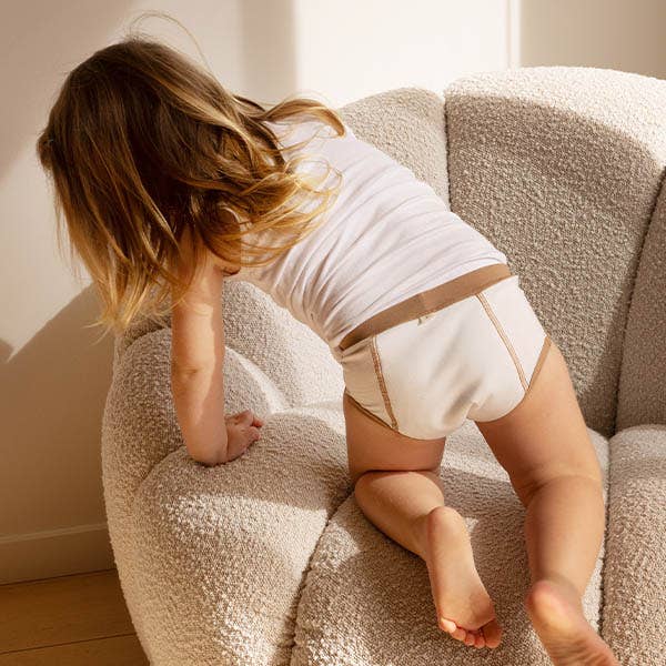 EcoNaps Potty Training Pants, thoughtfully designed to accompany your child through the final stages of their toilet training journey. Engineered with care and consideration, our reusable training pants are crafted from a luxuriously soft and stretchy organic cotton blend. With easy on-and-off functionality, they're perfect for busy toddlers, providing all-day comfort while still allowing them to sense dampness, gently encouraging them to take their next steps towards independence.