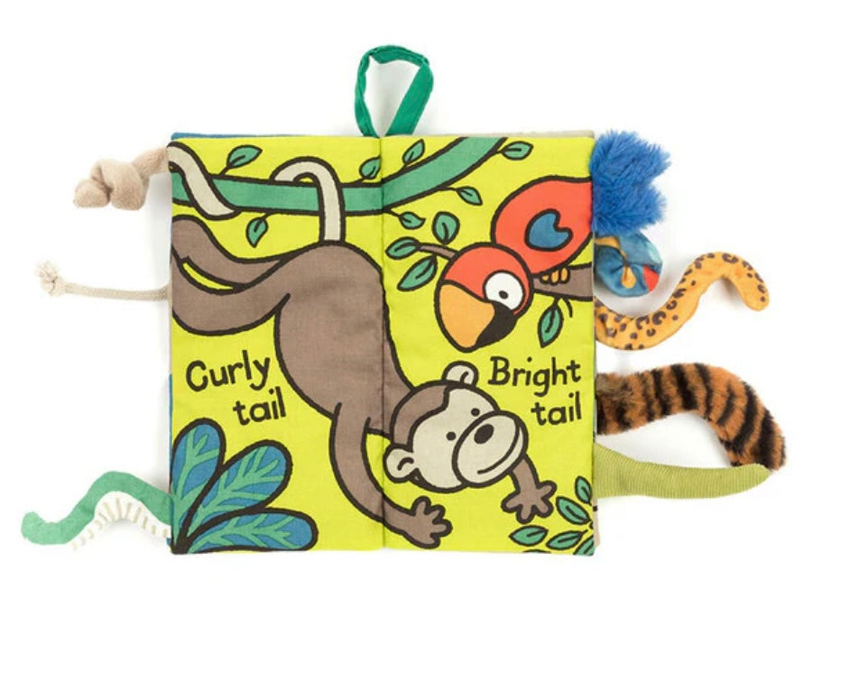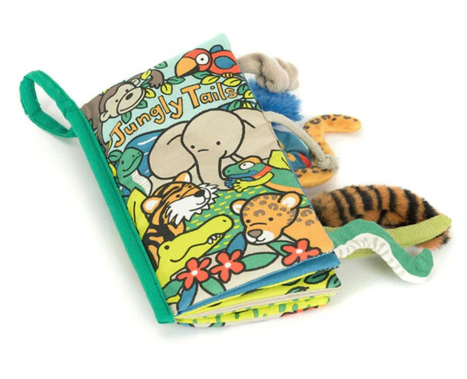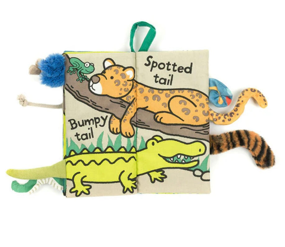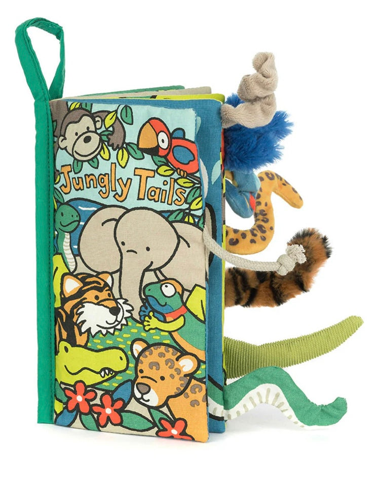 Jungly Tails Book allows little ones to explore the different tails of their favourite jungle Jellycats. An adorable touch-and-feel cloth book with bold colours and images, this book is a tactile exploration of which tail belongs to which textured jungle friend.