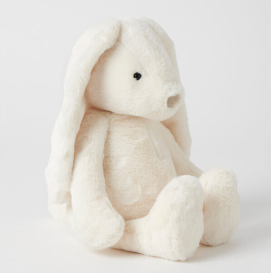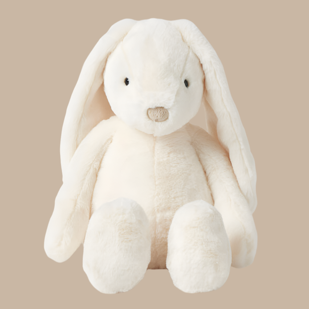 This lovable large bunny is the perfect companion for newborns and toddlers! Made from ultra-plush fabrics and child-safe trimmings, little ones will love the feel of its irresistibly soft fur, making it great for cuddles, and its beanie bottom will help it sit upright during playtime or when displayed on the shelf. This bunny’s large size also lends itself to the best cuddles.