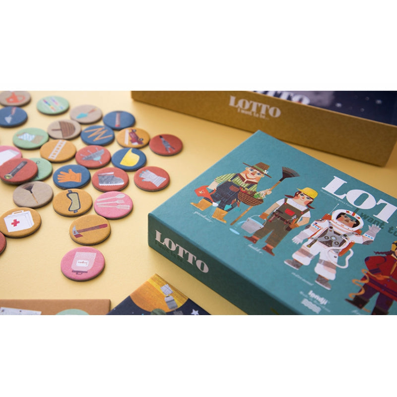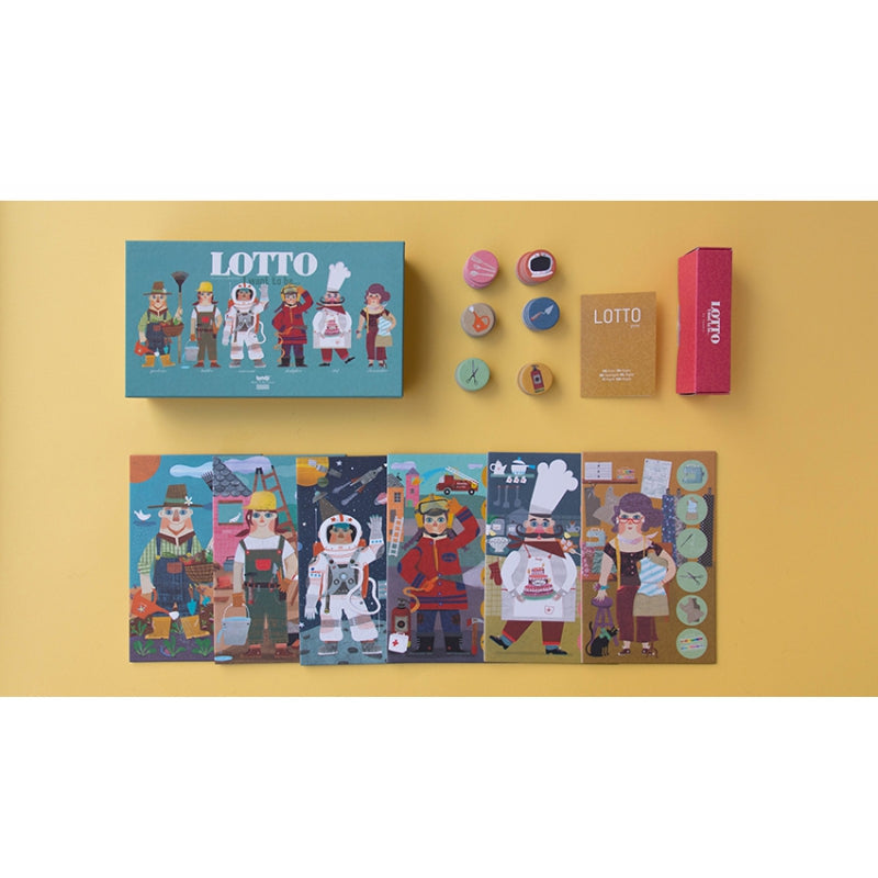 A Lotto game for children and grown-ups; the winner is the player who collects all the images of their occupation first.