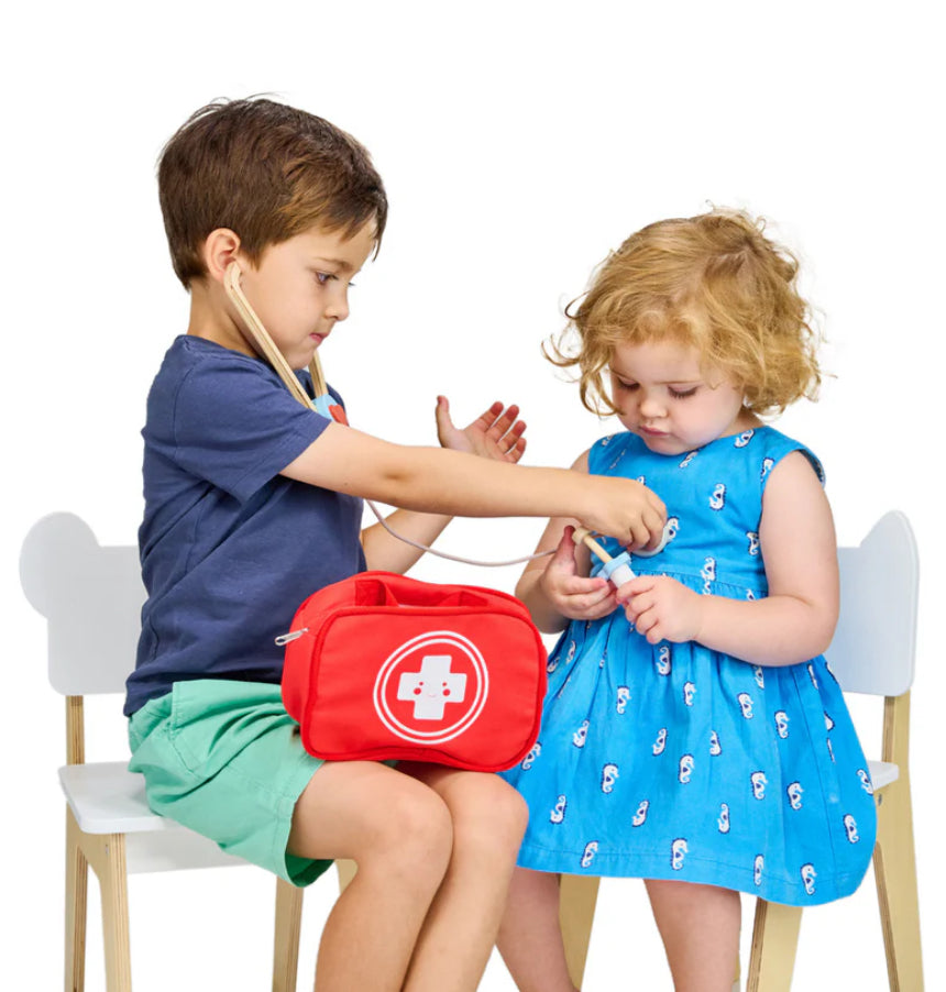 Prescribe a Dose of Fun with this wooden doctor's bag set.