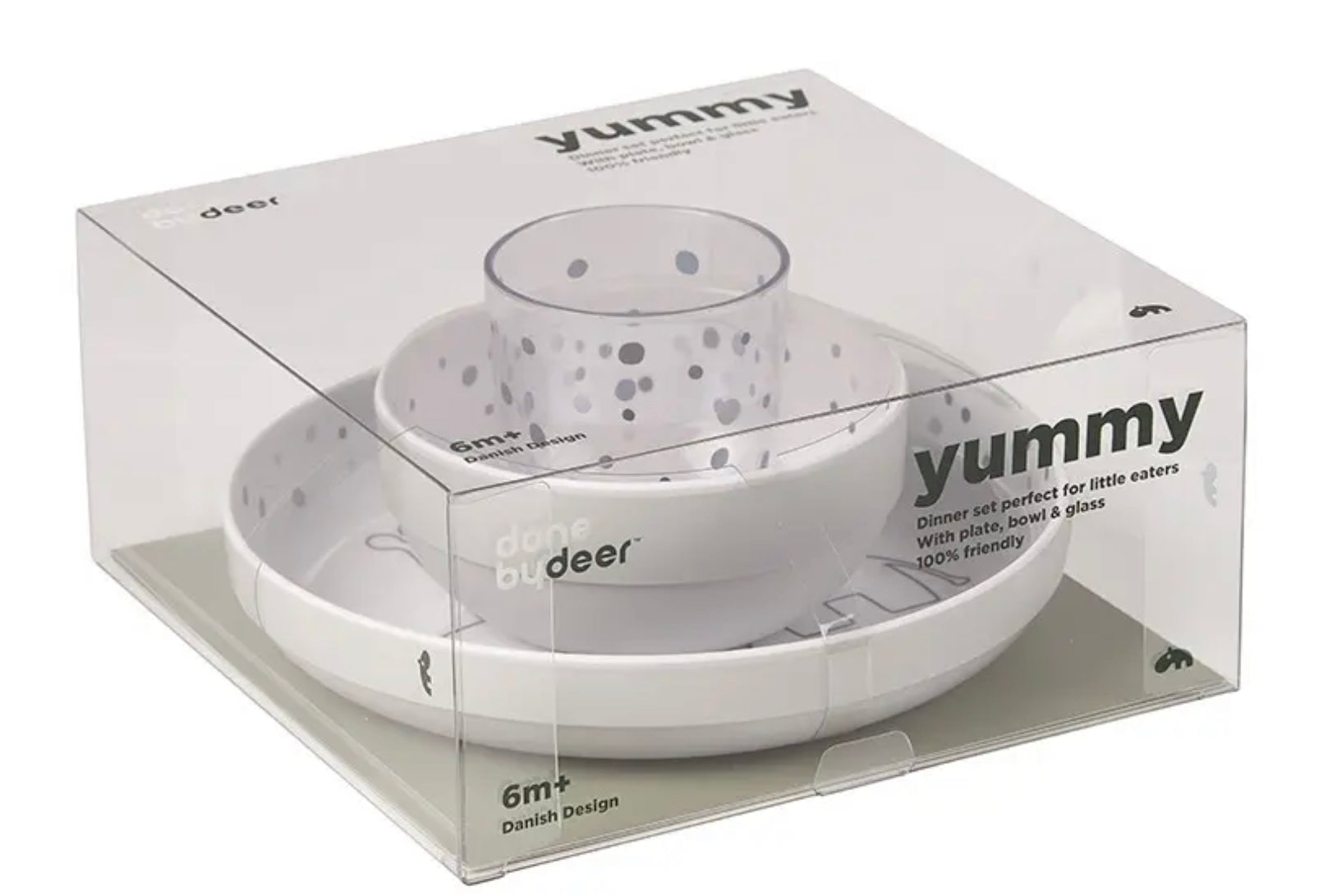 This gorgeous Yummy Mini Dinner Set from the Dreamy Dots range makes a perfect first meal set gift for a little one, or for your own baby.
