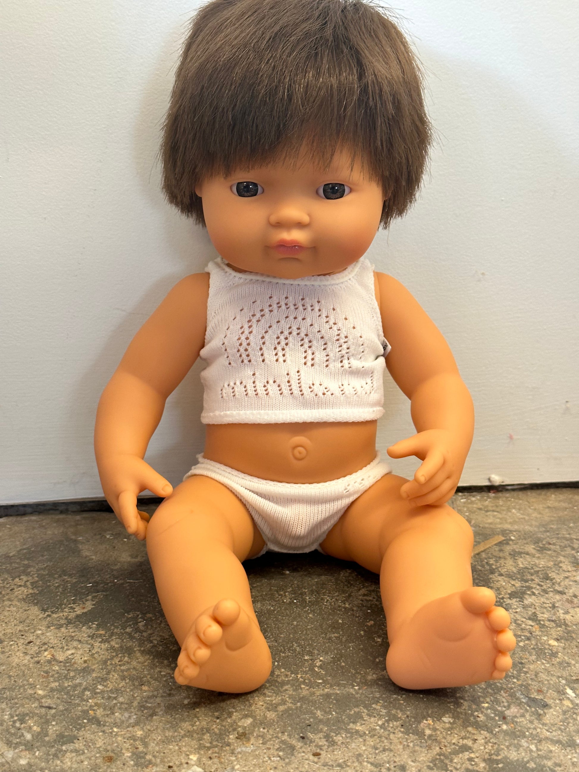 Made in Spain, these anatomically correct dolls are vanilla scented to smell like a newly born baby. The dolls have well-defined ethnic features to aid the identification of the most representative races.The dolls can be articulated.