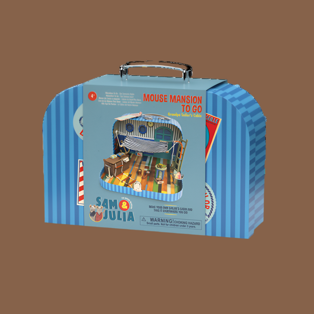 Welcome to Grandpa Sailor's Cabin! This exciting room in a suitcase is fully furnished with a hammock, ladder, fishing gear and a treasure chest. Assemble the cabin yourself using the wooden construction pieces and the decoration sheets.