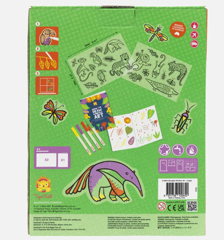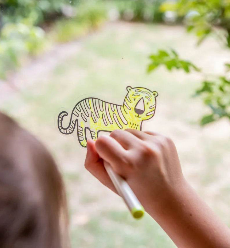 Colour-in lemurs, armadillos and toucans with the vibrantly coloured window markers, then stick the Movable pieces to the window (or any smooth surface including glass, tiles and fridges) and look out for the whimsical, colourful effect when the light hits the window! Extend the play-value by learning how to draw directly on the window using the included guide.