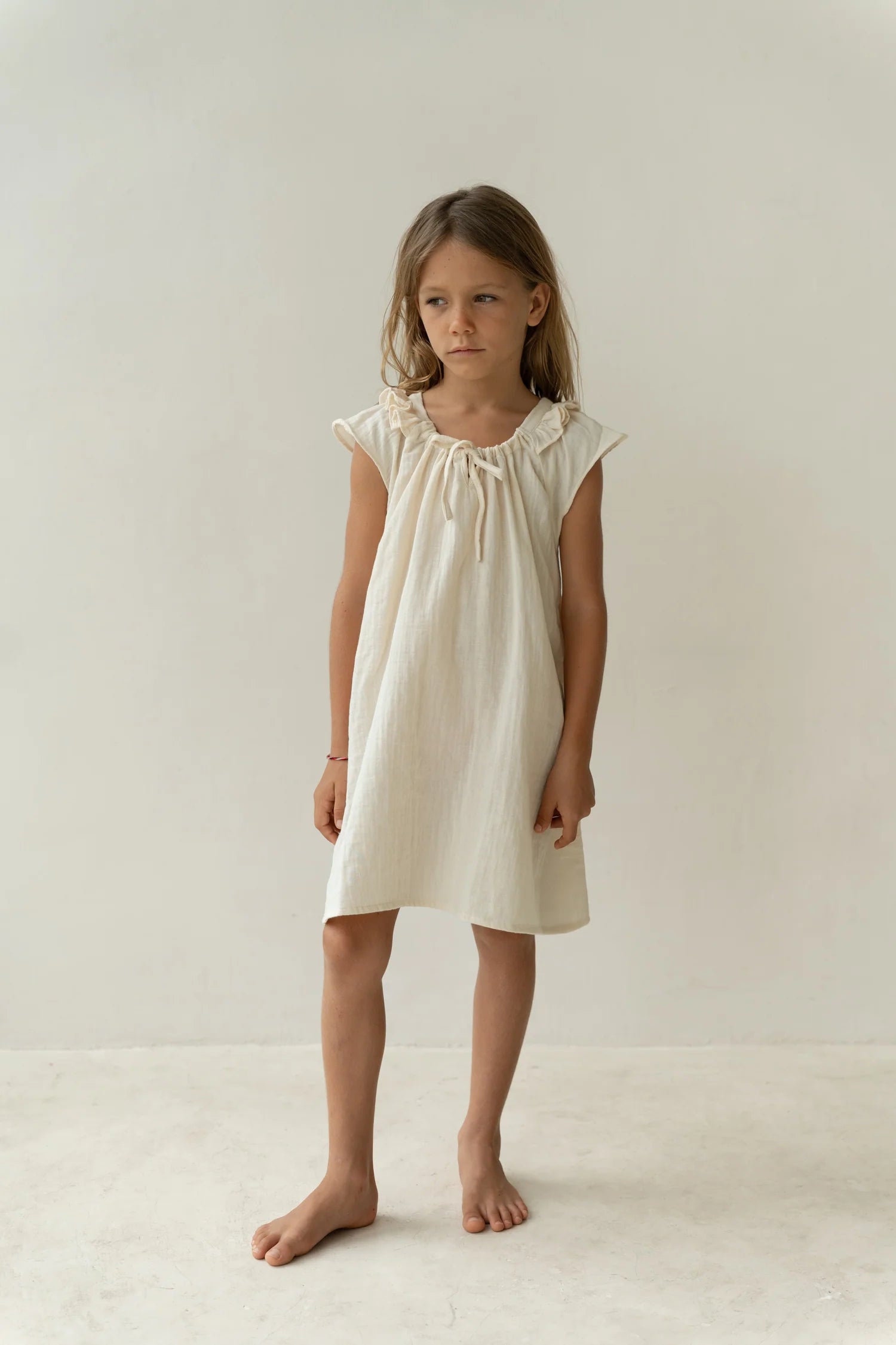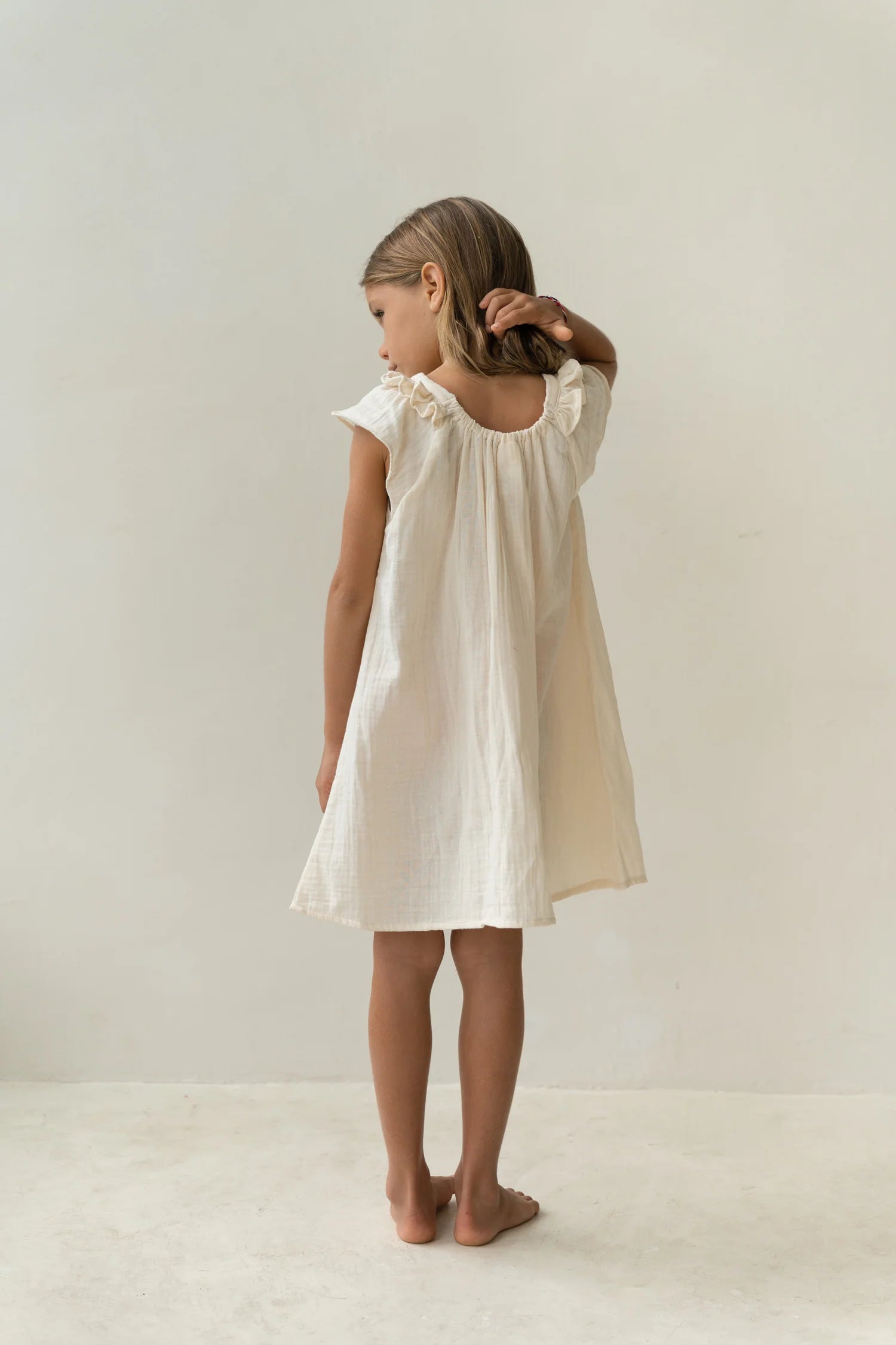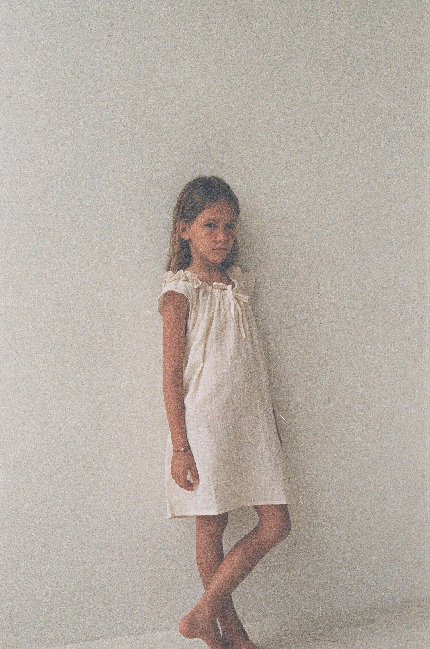 Introducing the Opie Dress—a delightful twist on our best-selling Opie Romper! This enchanting dress features flutter sleeves and a sweet frill neckline with a tie detail, perfect for twirling through summer days. Crafted from lightweight, breathable cotton in our versatile Ecru hue, bringing an effortless feel to every outfit.