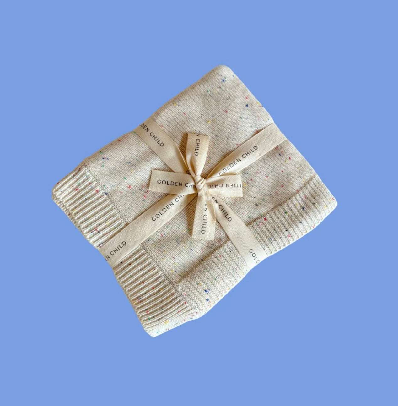 Machine washable for easy care, the Rainbow Flecks Baby Blanket is an ideal gift for baby shower or to celebrate new arrivals. Mix and match with one of our golden child signature swaddles.