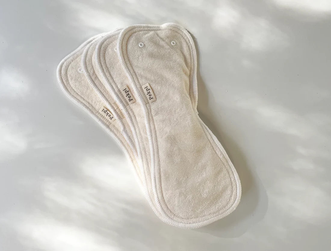 + 4x Super-soft 6 layer Bamboo French Terry Snap-in hourglass Insert in a cotton drawstring bag.