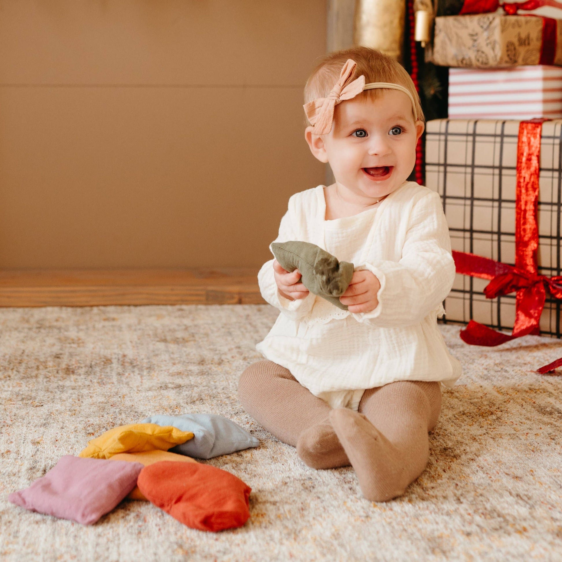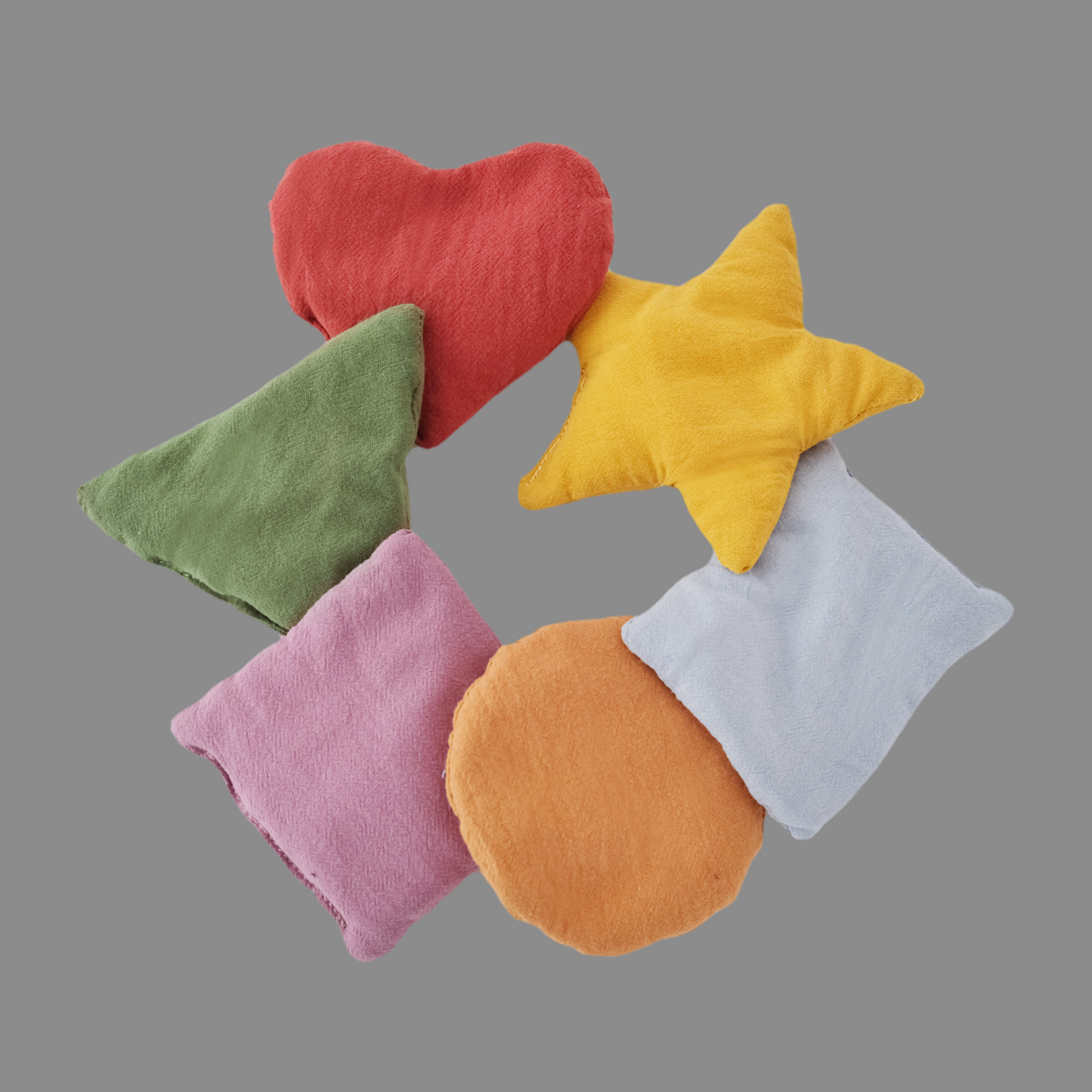A classic and essential basic toy to be included in your Montessori toy collection, our SHAPE BEANIES are made out of 100% cotton and in all the first primary shapes + colors to learn. The beanies contained inside each shape are sewn separately into an interior pouch, making it extra safe.