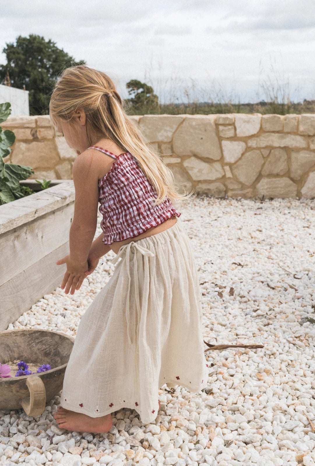 Too cute to handle - the Shirred Crop in our heritage red gingham print is perfect for those warm days ahead. Crafted from cotton, this piece offers fixed straps, a shirred bodice and subtle frill details. We love this paired with the Posie Skirt or beloved Summer crochet pieces.