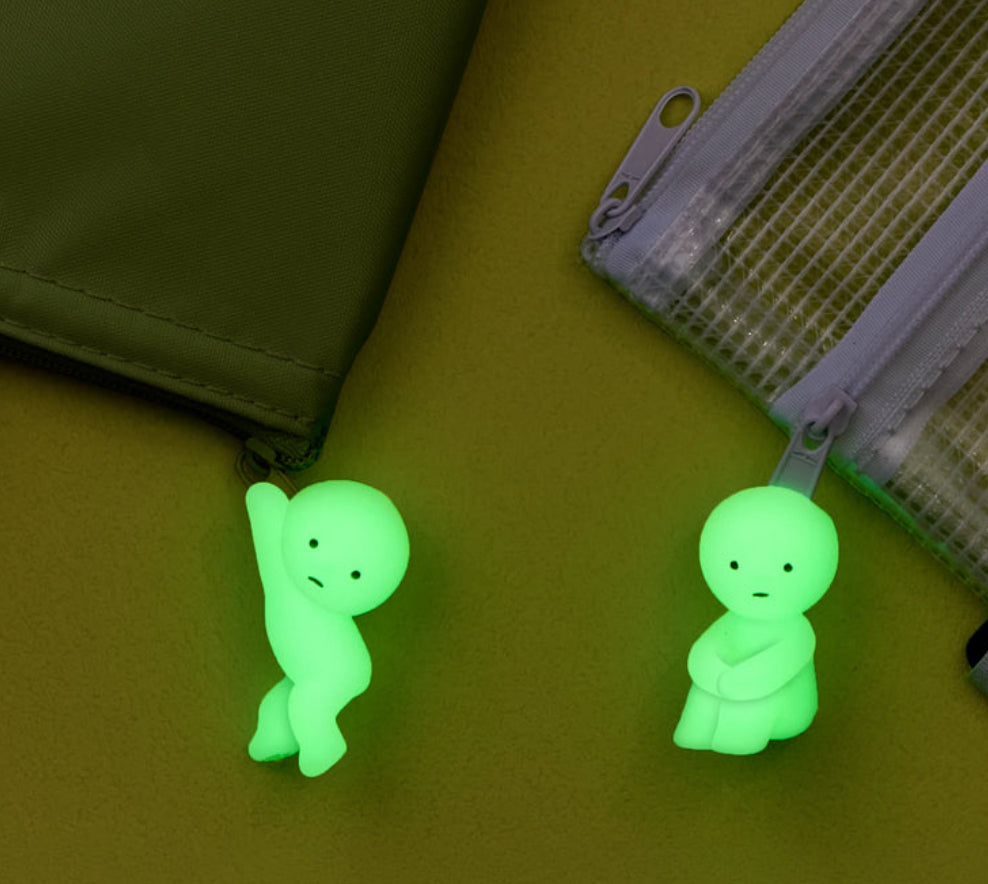 Usually, SMISKI waits in the corner of your room, but with SMISKI ZIPPERBITE they can attach to your bags, pouches, or hoodies—anything with a zipper—to quietly watch over you wherever you go! Just like the main series, SMISKI ZIPPERBITE is made of phosphorescent material that absorbs and emits light. They will glow softly in the dark to gently soothe your heart wherever you go, day or night.