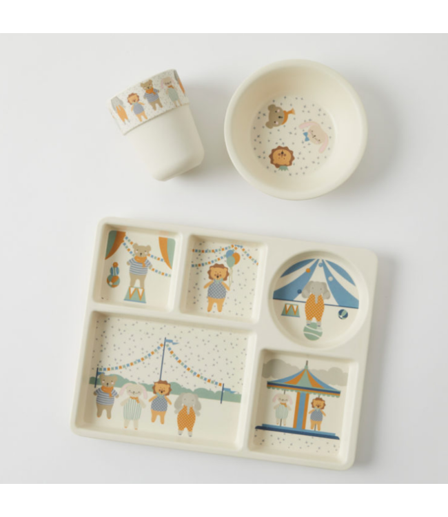 Make mealtime fun for little ones with this adorable eco-friendly bamboo fibre Kids 4 Piece Dining Set! The Dining Set includes a child-sized plate, bowl, & cup featuring Spectacular Leon, Spectacular Evie and more!