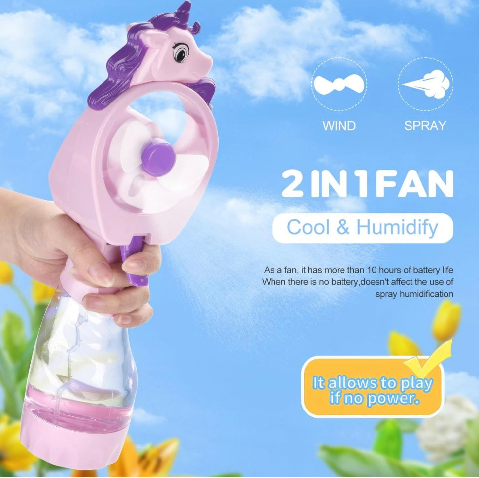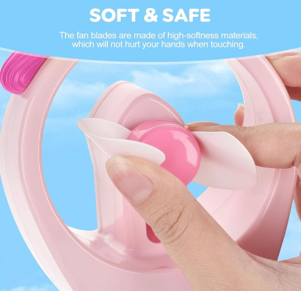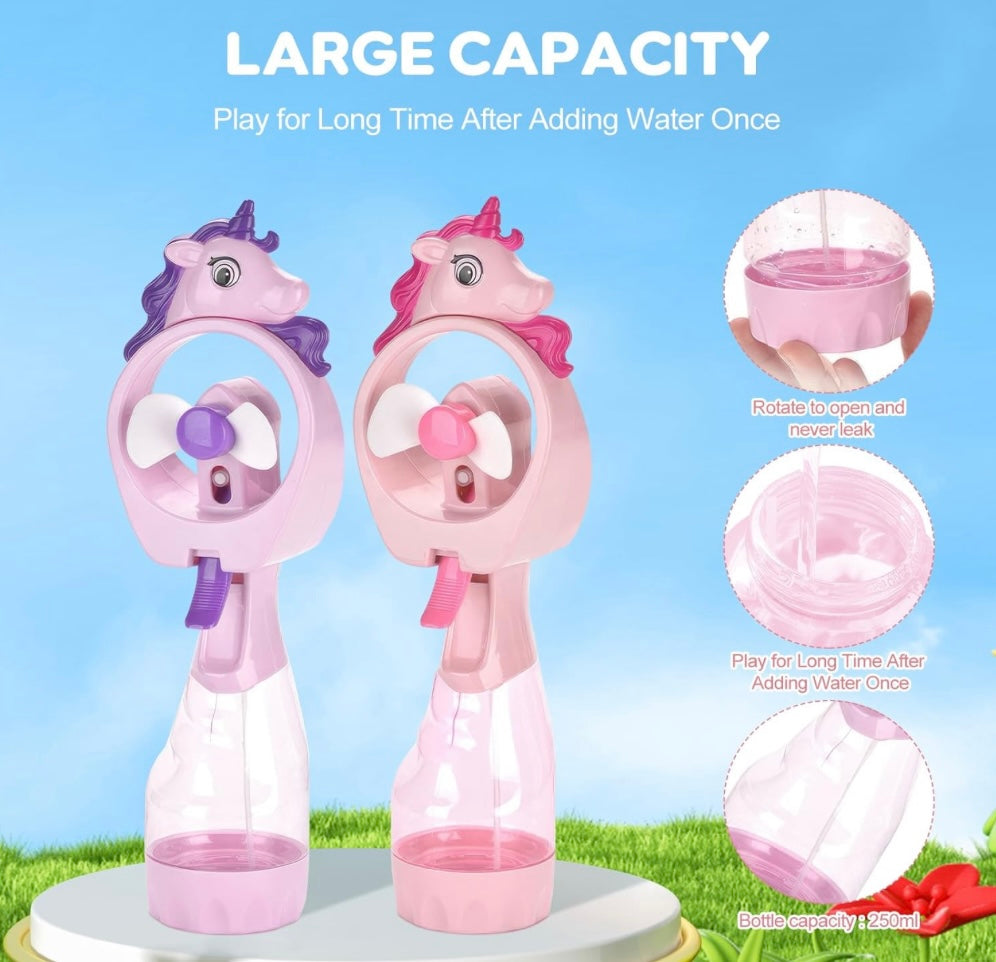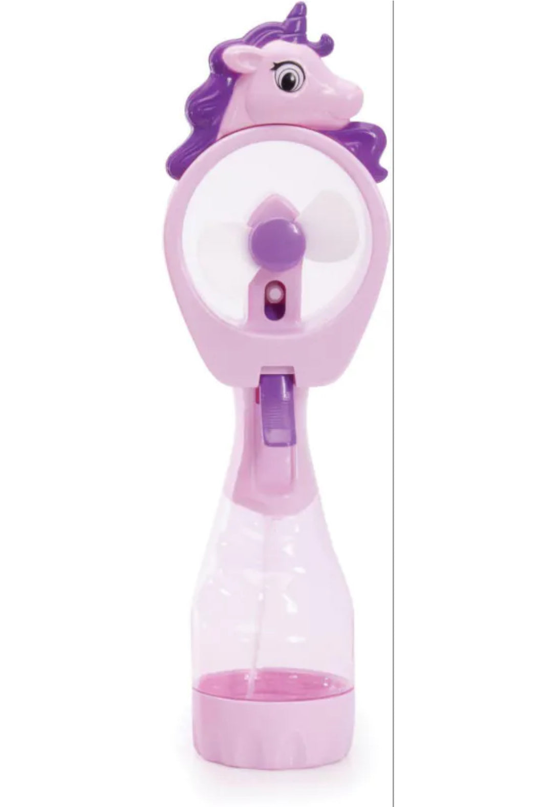 This handheld, portable T-Rex or Unicorn fan has soft blades and a 250mL water container, so you can spritz to stay cool.