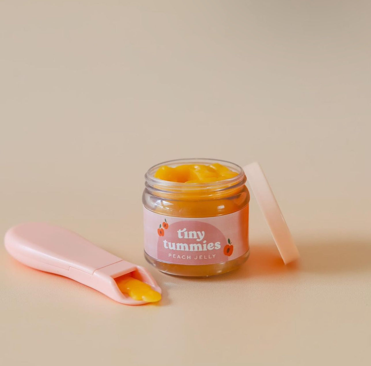 Our Tiny Tummies range are available in Coconut Yoghurt, Grape Jelly, Roast Chicken Dinner, Apple Puree, Banana Custard, Chocolate Custard, Strawberry Custard and Peach Jelly.