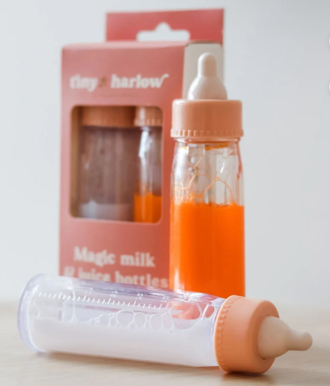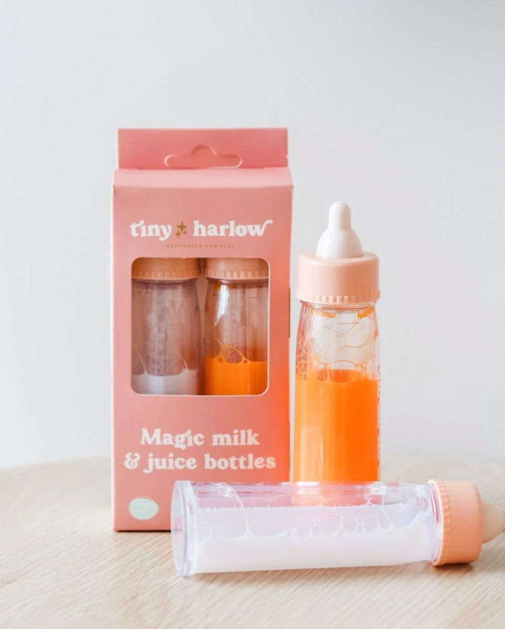 Tiny Harlow's Magic Milk and Juice Dolls Bottles are the perfect addition to imaginative playtime! These realistic-looking bottles are designed to enhance a pretend play and feeding experience with dolls.