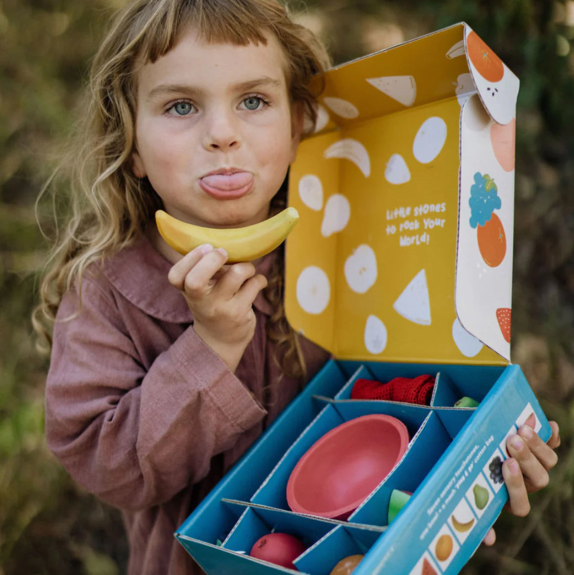 Each set comes packed in a gift-ready box and includes seven sensory stones, a small matching bowl, and a mesh bag to keep the set together, and for easy cleaning.