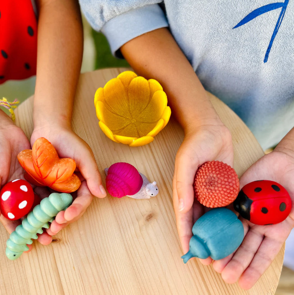 -Inside the Garden Goodies box, you will find one caterpillar, ladybug, leaf, beetle, snail, acorn, and toadstool