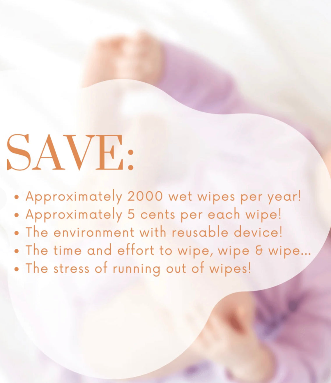 The Baby Bum Shower is a small, hand-held device that delivers soap (pH neutral) and water or just water, whenever it's needed. Keep it at your change station or in your nappy bag when on-the-go to make changing a whole lot more hygienic, eco-friendly and effortless. It is activated by a simple squeeze of the bottle making it simple and easy to use in the messiest of situations and you would use it in a couple of ways: For a wet nappy: Open the wet nappy and leave it under your baby’s bottom. Then Squeeze the Baby Bidet to spray your baby’s bottom and clean away any wee. Remove the wet nappy from under your baby’s bottom. Apply your nappy cream. Put a new clean nappy on your baby. Then spray the Baby Bidet on your hands to clean them. For a dirty nappy: Open the wet nappy and leave it under the baby’s bottom. Squeeze the Baby Bidet to spray your baby’s bottom and clean away any waste. Wipe top down, to remove excess waste away from your baby’s bottom. Squeeze the Baby Bidet again to spray your baby’s bottom and clean away any remaining waste. Remove the dirty nappy from under your baby’s bottom. Apply your nappy cream. Put a new clean nappy on your baby. Then spray the Baby Bidet on your hands to clean them.