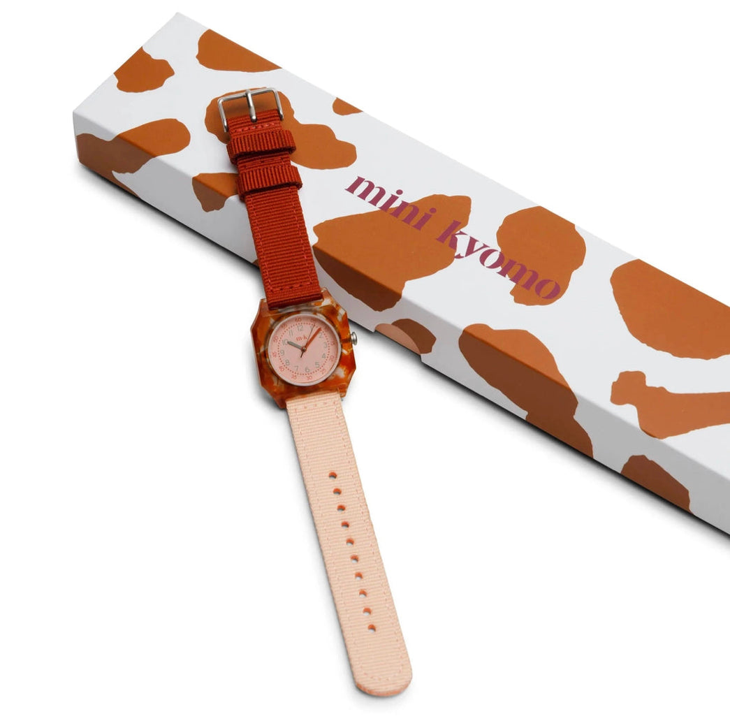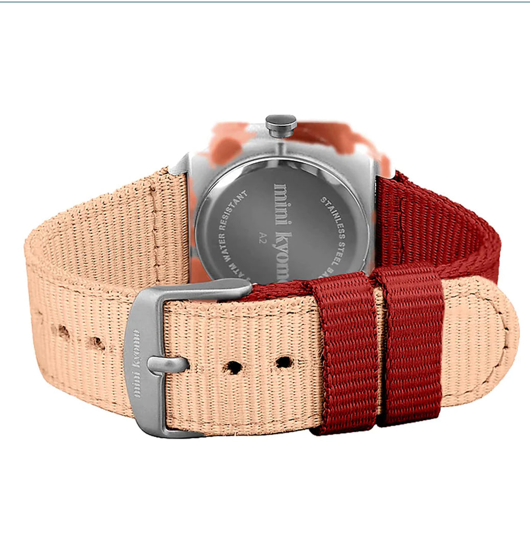 Fun and stylish, the Cinnamon Roll kids watch has been designed to be the perfect accessory for your child. It is equipped with a Japanese movement and a mineral glass. In order to support adventure and play, it is also waterproof. The watch has clearly readable dials with strong colour contrast to make learning to read time an easy task. All hours and five-minute steps are written out, the minutes in-between are marked with small dots.