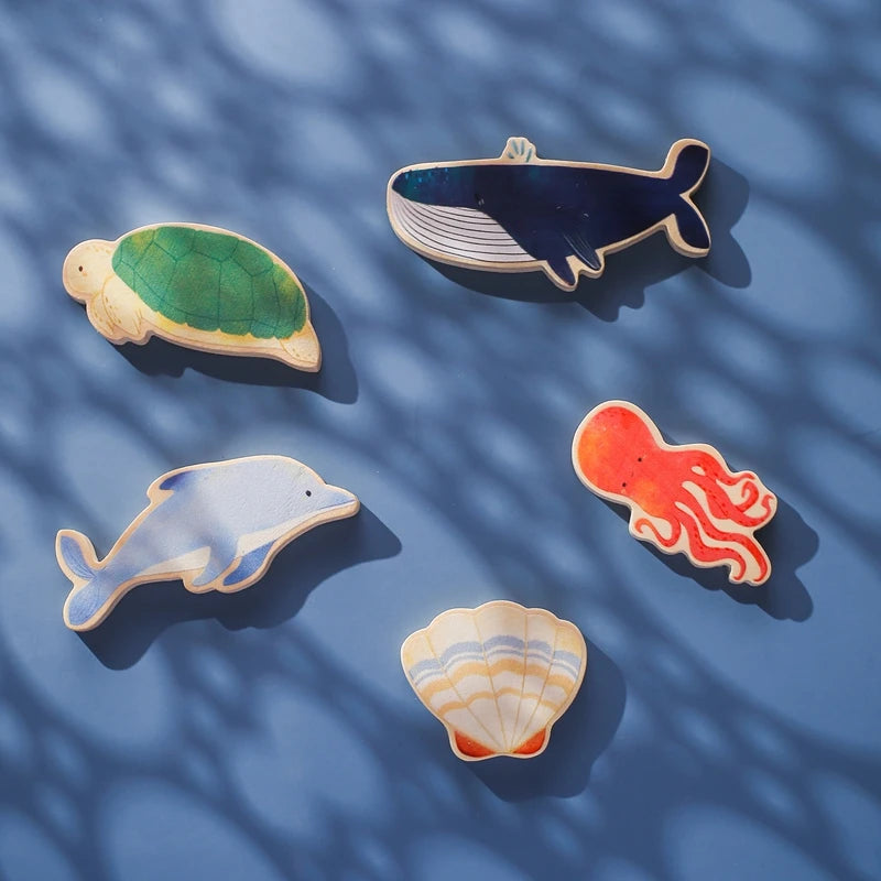 Wooden Puzzle Collection, available in charming designs like forest animals, ocean life, and outer space. Each puzzle features chunky, baby-safe pieces that are easy to grasp, helping toddlers develop fine motor skills, hand-eye coordination, and early problem-solving abilities. Made from smooth, eco-friendly wood with non-toxic paints, these Montessori-inspired puzzles are perfect for safe, screen-free learning and play.