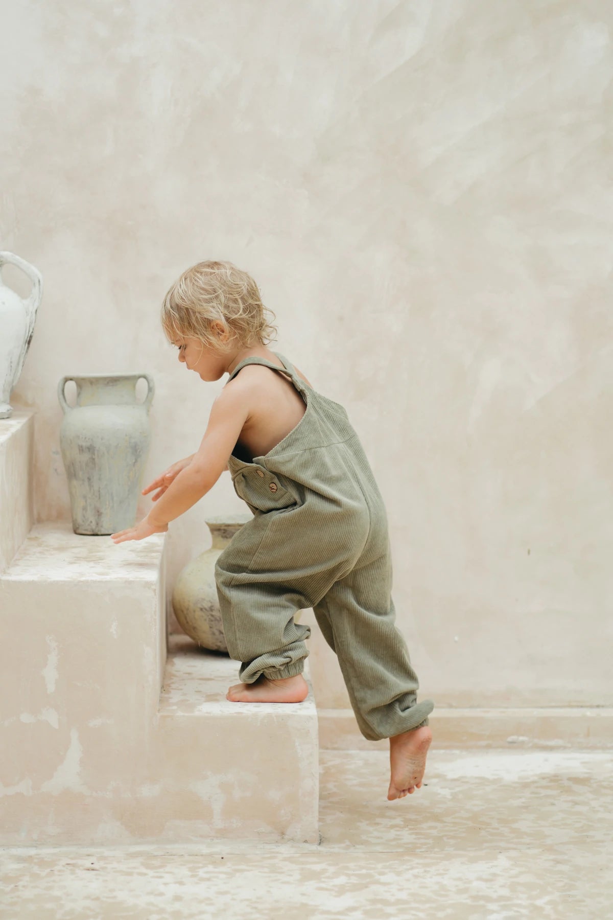 Corduroy overalls.